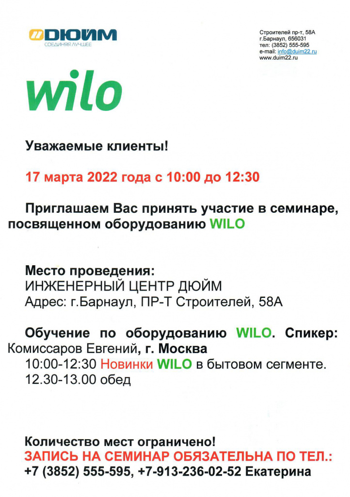 WILO: Обучение в Инженерном центре Дюйм
